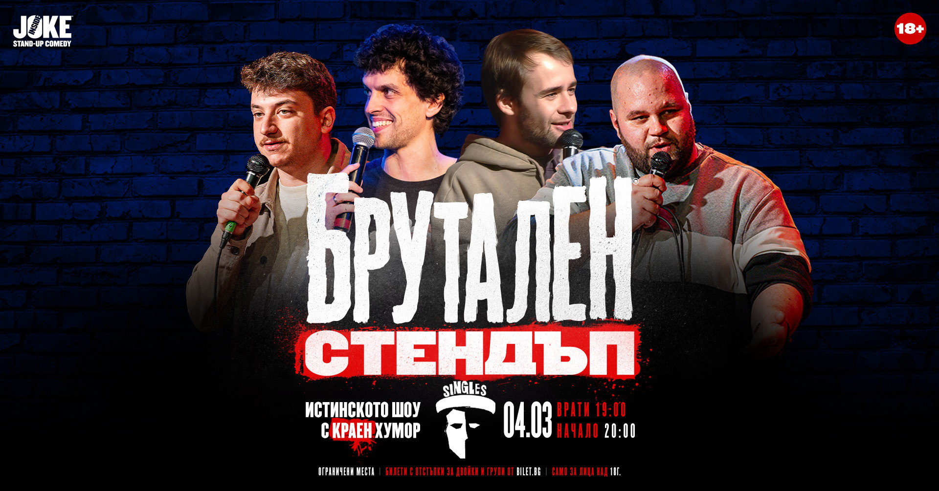 Не пропускайте тази скандална вечер с мастити комедианти и черен хумор за ценители - само на 4 МАРТ, само в клуб SINGLES (НДК, вход А4)