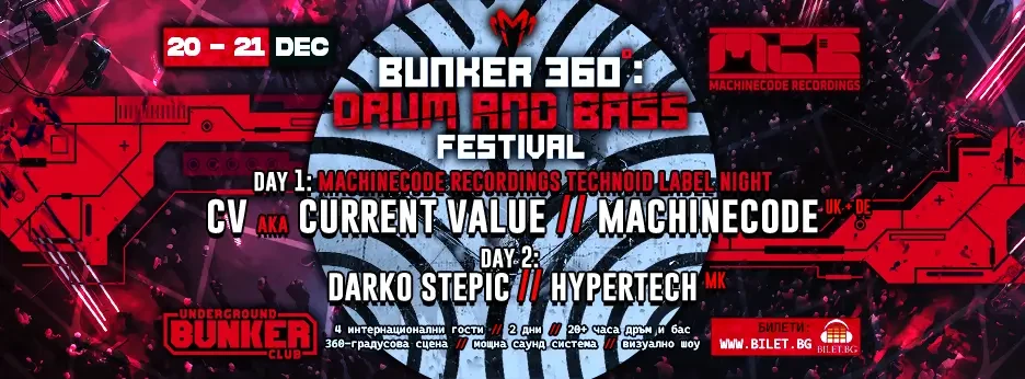 Bunker Club и Miguel DnB ви канят на двудневно музикално пътешествие! Bunker 360° ще превърне клуба в истинска арена, където артистите и публиката се сливат в едно цяло благодарение на уникалната 360-градусова сцена, разположена в центъра на пространството.