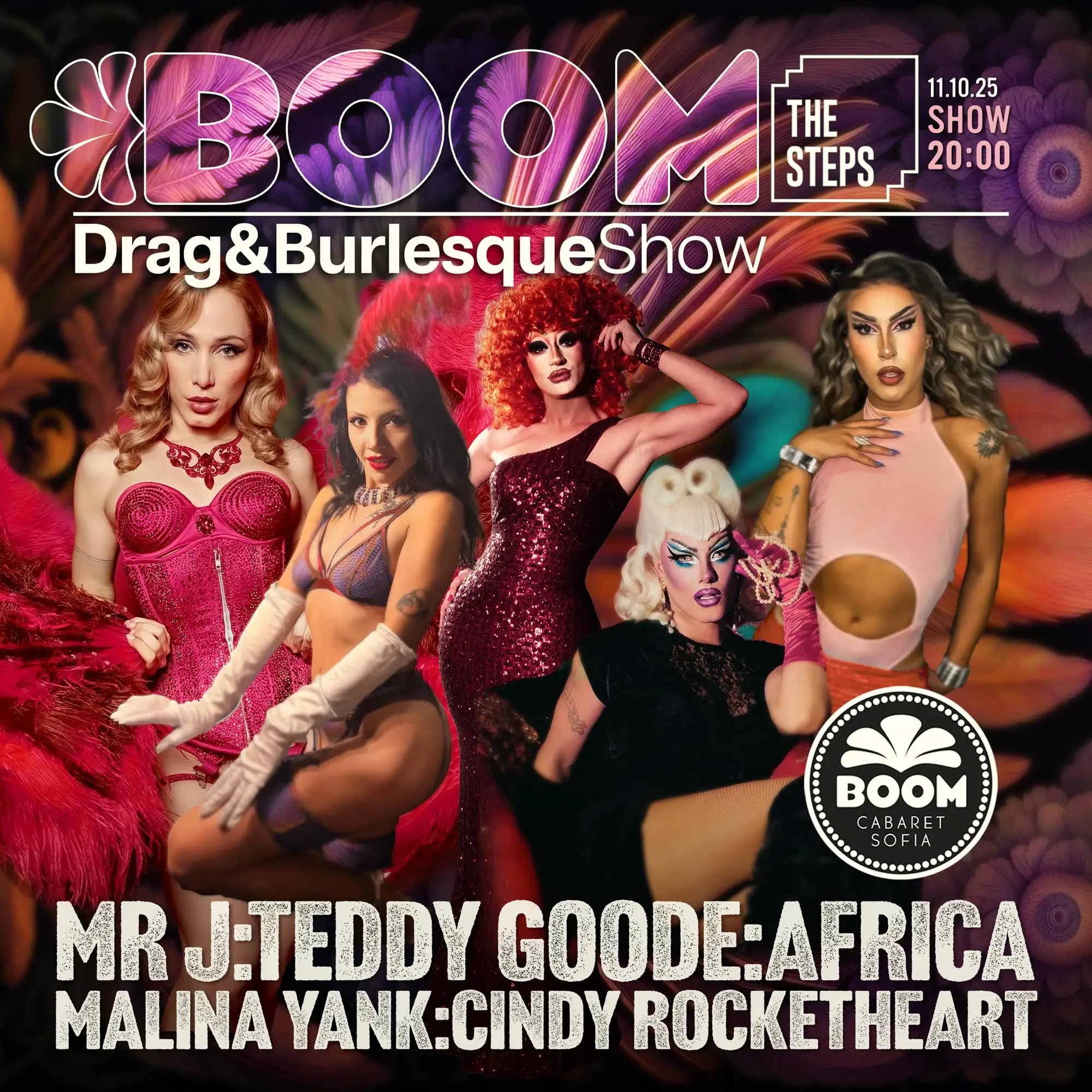 Единственото бурлеск кабаре у нас ви кани на бляскаво шоу! През октомври голямо завръщане ще направи бурлеск дивата Синди Рокетхарт, която ще представи най- новия си акт, а дивата на кабарето Теди Гууд, директно след бурлеск фестивала в Белгия ще представи нов главозамайващ костюм и бляскави премиерни изпълнения с нашите танцьори.