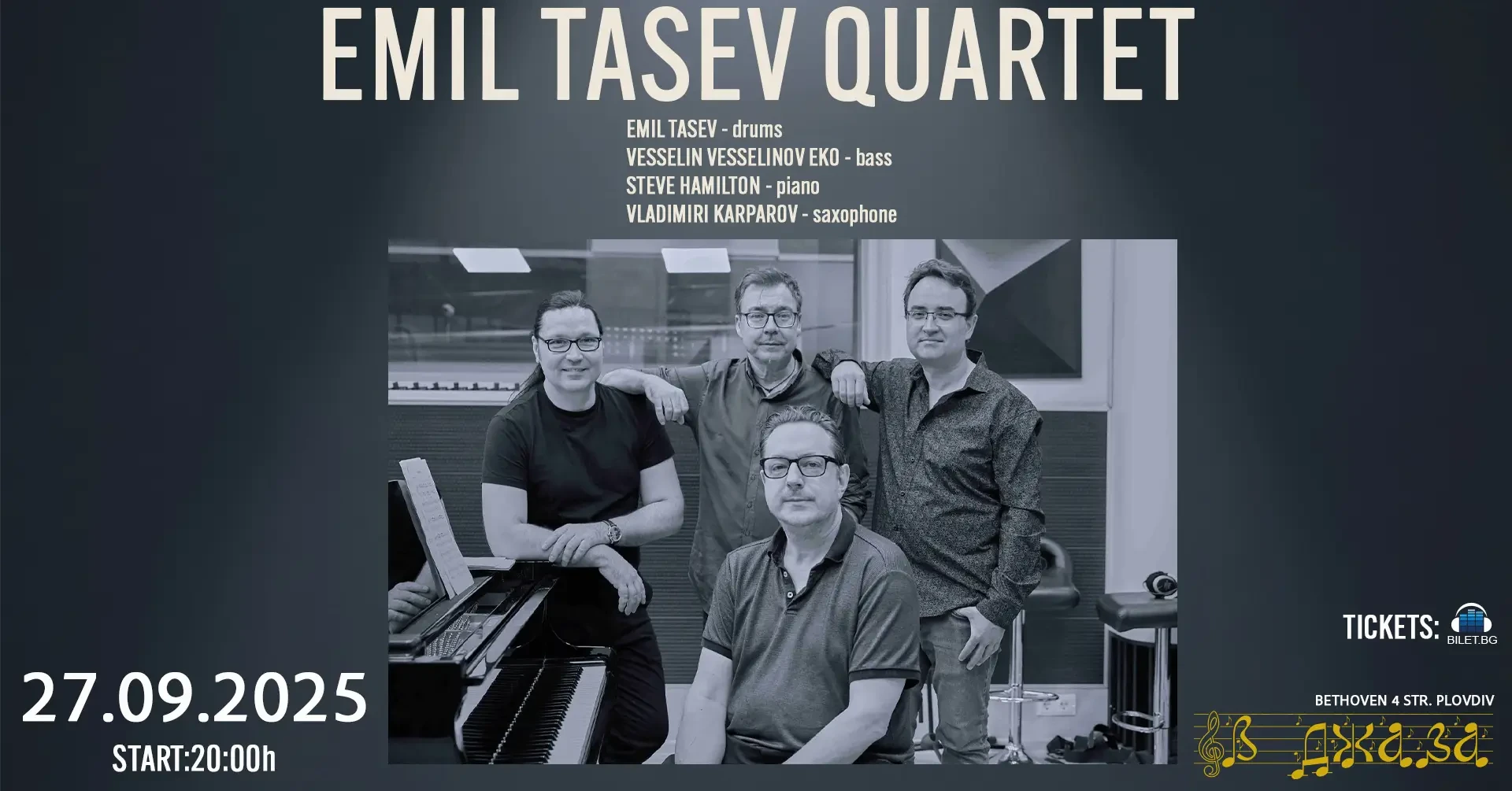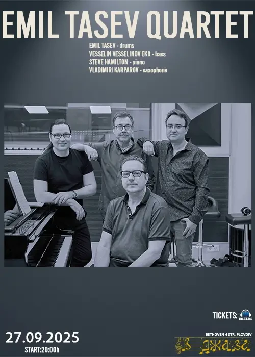 The quartet was founded in 2021 by Emil Tasev, and its lineup includes some of the most prominent Bulgarian and international jazz musicians.