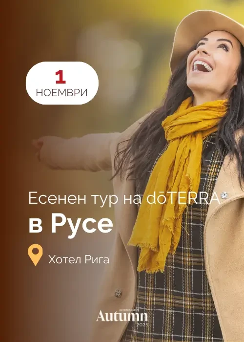 Очаквайте нашите специални гости, които ще споделят с вас как да се погрижим за стреса и съня, как да обновим и подготвим тялото си за есенно-зимния сезон, как да повишим енергията и метаболизма си, как се справим с емоционалните дисбаланси с помощта на етеричните масла и продукти dōTERRA!