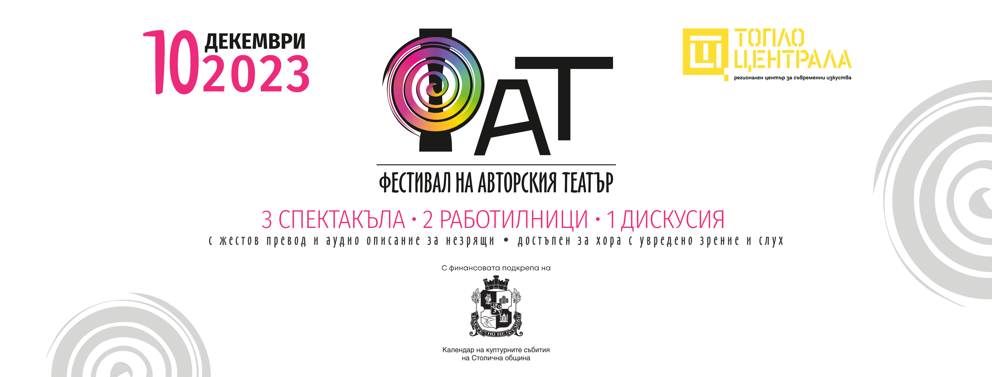 The festival program of the 1st edition of FAT includes 8 author's performances, 2 theater workshops led by experts in the field, discussions, an exhibition with free access of photos and props from performances and a projection of video materials of the Dramedy Theater.