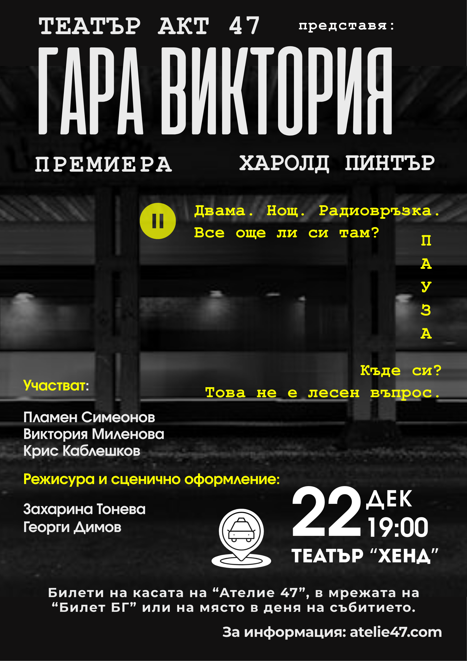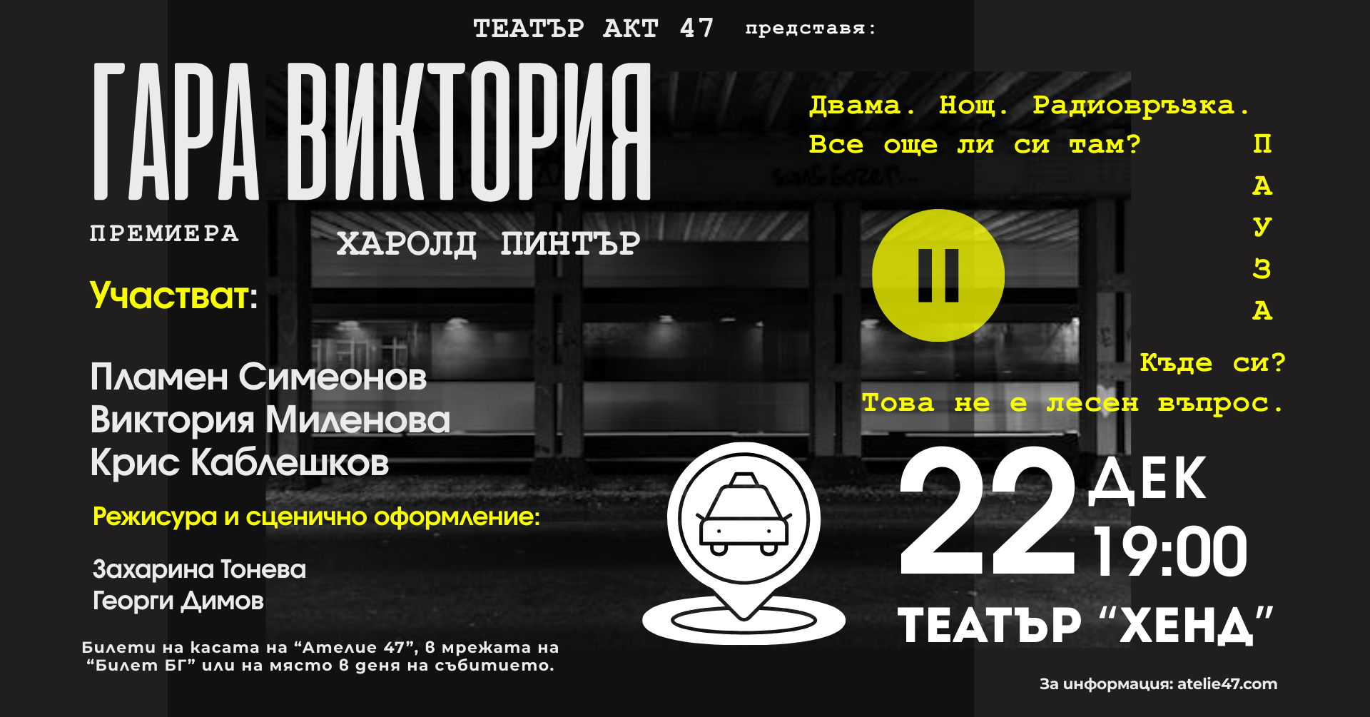 Tickets in advance at the Atelier 47 box office or in the Bilet Bg network.