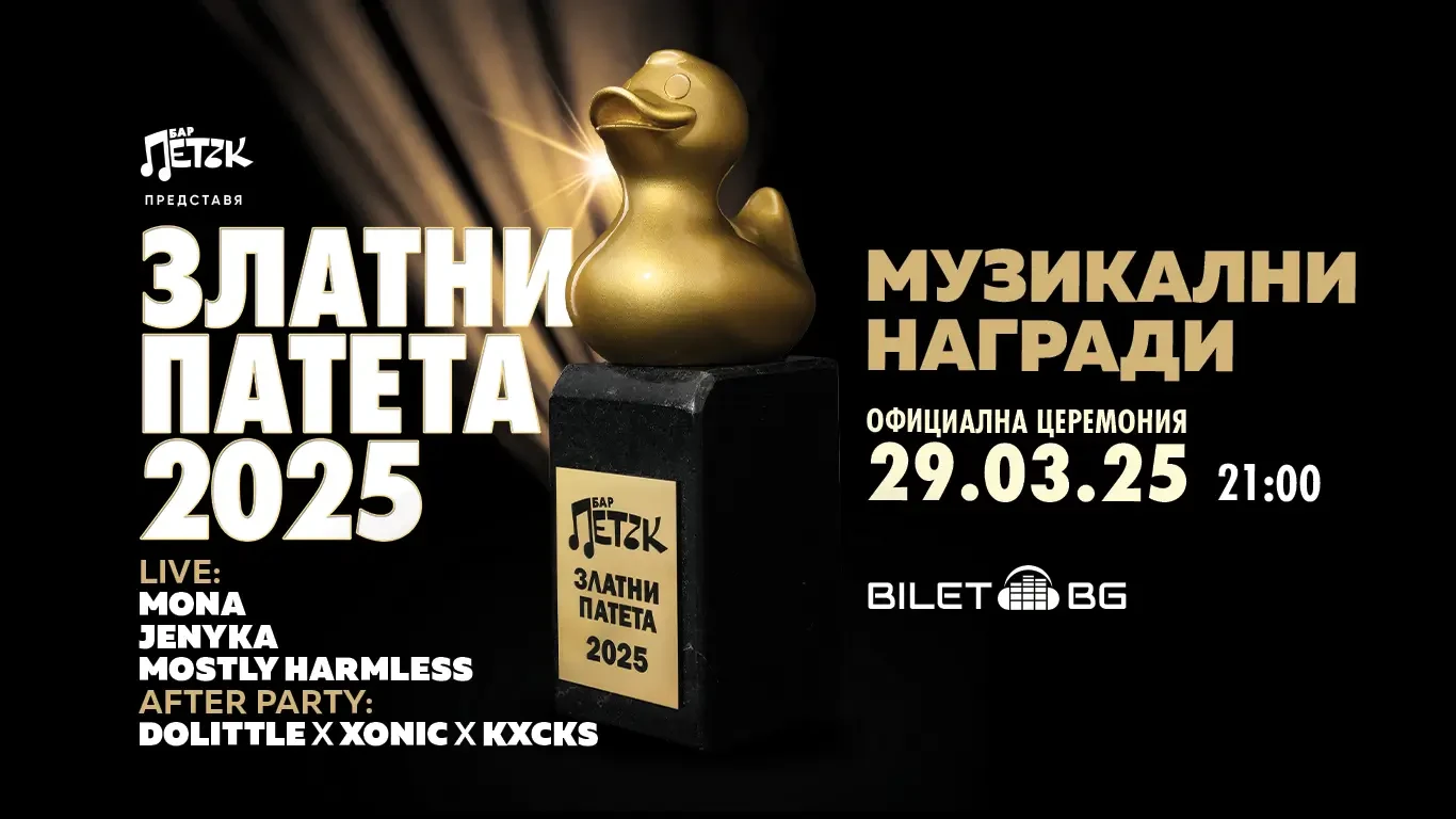 ⭐️ The Bar Friday Music Awards "Golden Ducklings 2025" are approaching in full force! ⭐️ 🏆 Support your favorite ducklings at www.barfriday.bg until 00:00 on March 23rd. ✨We invite you to the official awards ceremony at Bar Friday on March 29th! Here is some news from us: 🐣 The newly hatched MONA, JENYKA & MOSTLY HARMLESS will perform some of their original songs LIVE! 🎤 For the first time, the host of the ceremony will be the wonder woman - Vicki Terziyska (group Mastilo) 🏆 Soon we will also announce some of our special guests who will present awards to the winners in the categories! 🏅Who will be the Golden Ducklings for 2025 is up to YOU! Doors: 8:00 PM. Start: 9:00 PM. 🎫 Tickets for the ceremony on the Bilet.bg network 18+