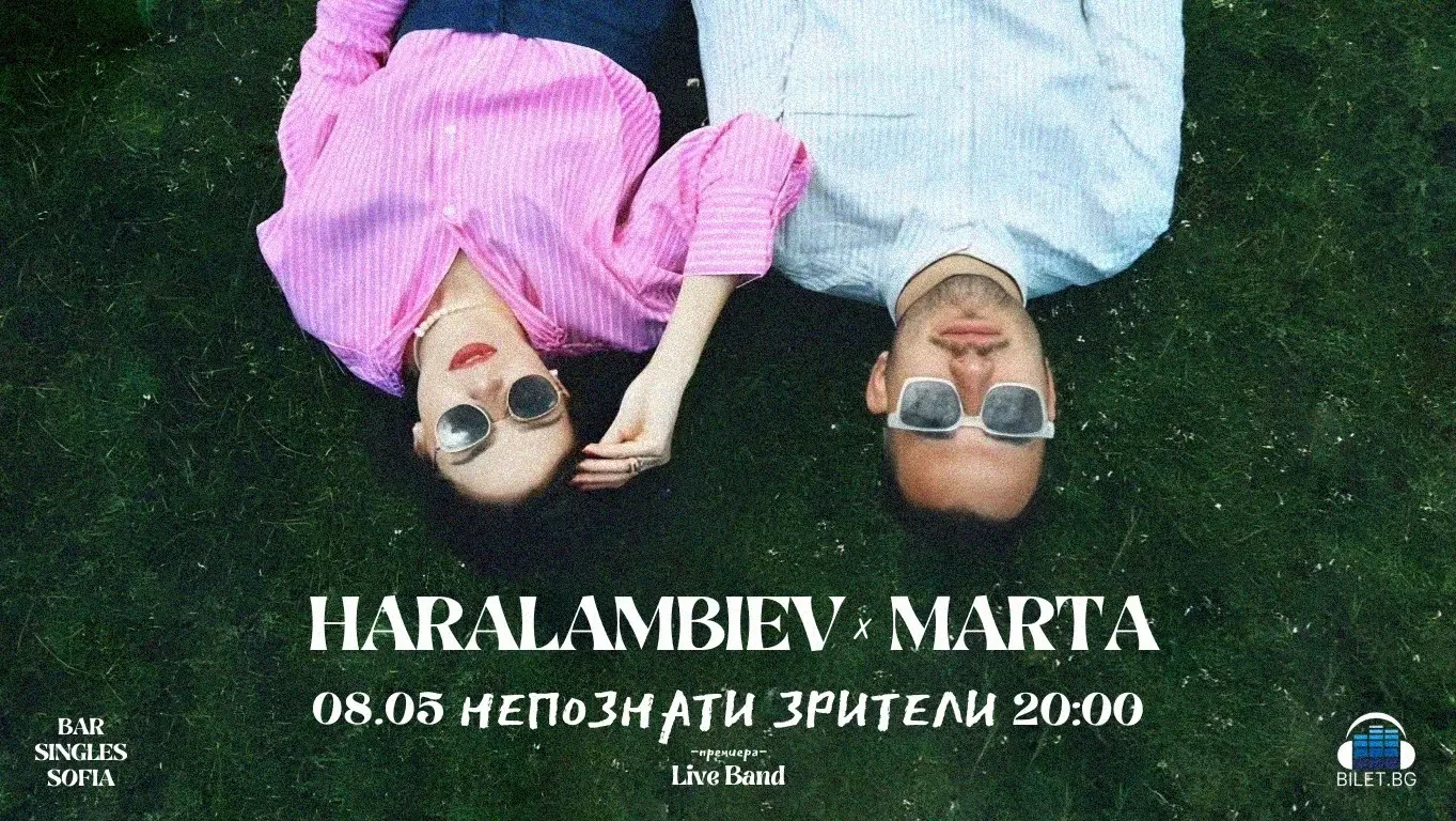 Една неповторима вечер, в която сцената става среща между познати мелодии и нови думи. Между артисти и непознати зрители. На 8 май в бар Сингълс HARALAMBIEV и MARTA заедно ще представят най-новата си песен „Непознати зрители“, заедно с премиера на официалния ѝ видеоклип.