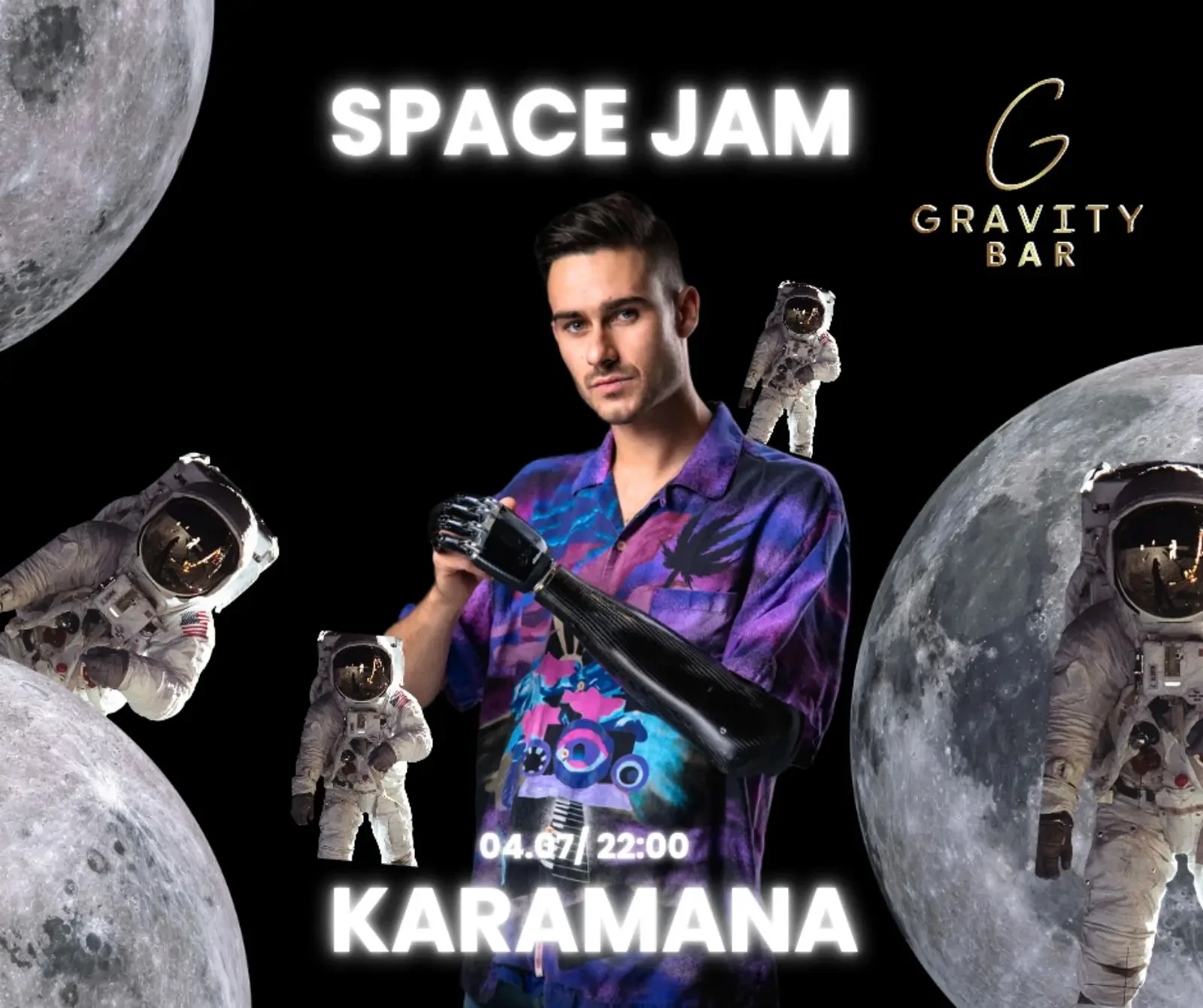 Our astronauts will welcome you and prepare you with an incredible shot composition of different planets, and then you will fly with us on a sound mission without gravity.