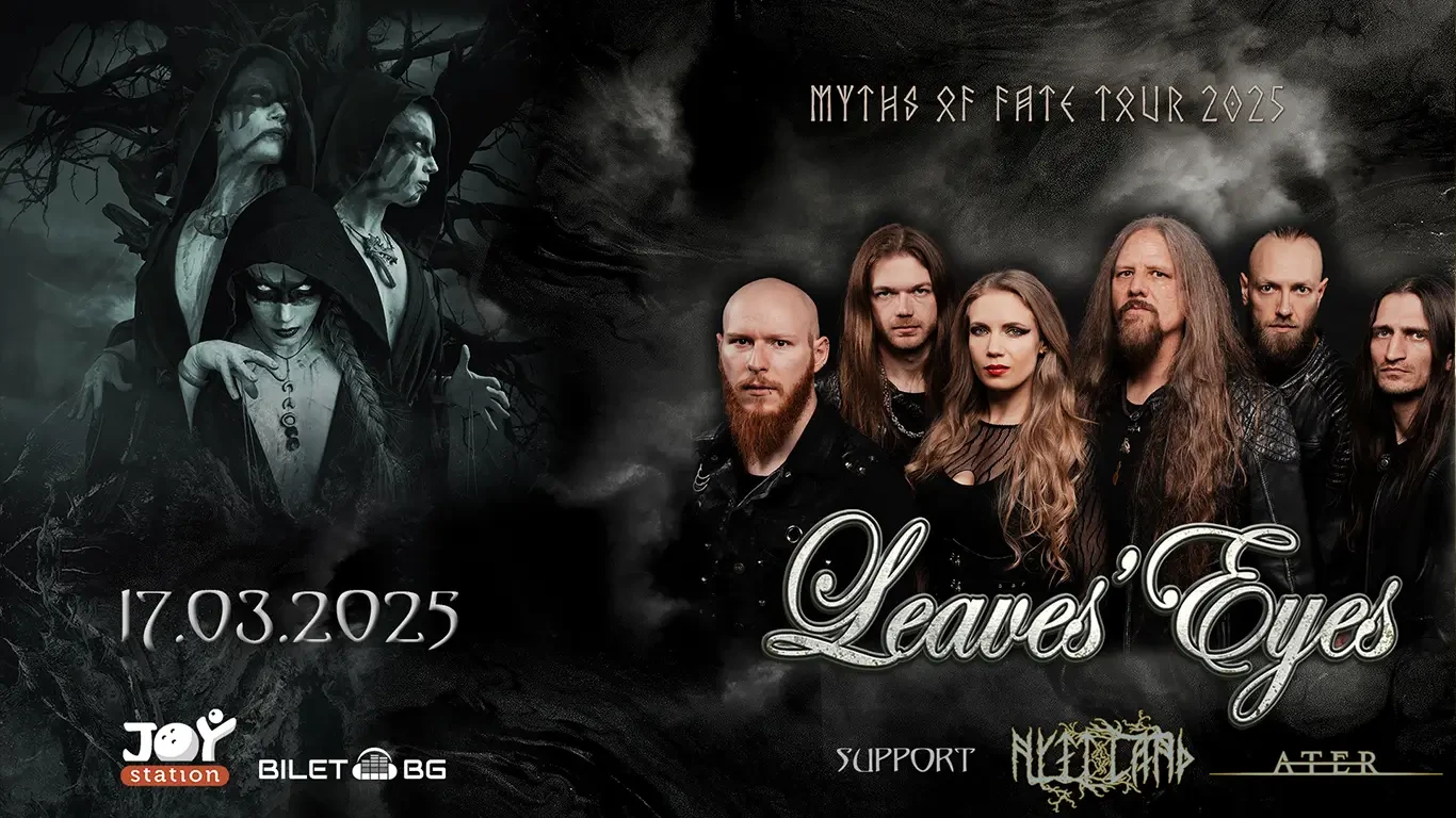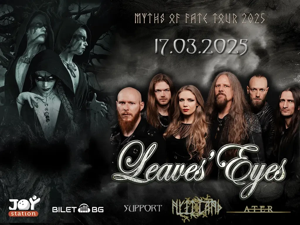 Tickets for the Leaves' Eyes concert at the Joy Station club on March 17, 2025 are on sale on the Bilet.bg network (including Fast Pay cash desks and "Na tamo" stores), the cash desks of "Fantastico" stores, as well as online at https://sme.bilet.bg/ at prices from: