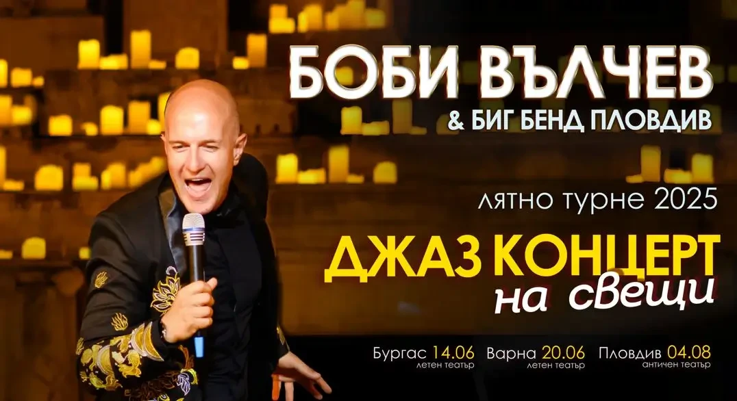 Get ready for an unforgettable musical experience! After the grand success of last year's concert with 17,000 candles that lit up the stage and the hearts of the audience, Bobby Valchev and Big Band Plovdiv are going on a national tour.🎤 Enjoy jazz in a new way - under the light of over 10,000 candles! These concerts are not just music, but a unique experience for all the senses.