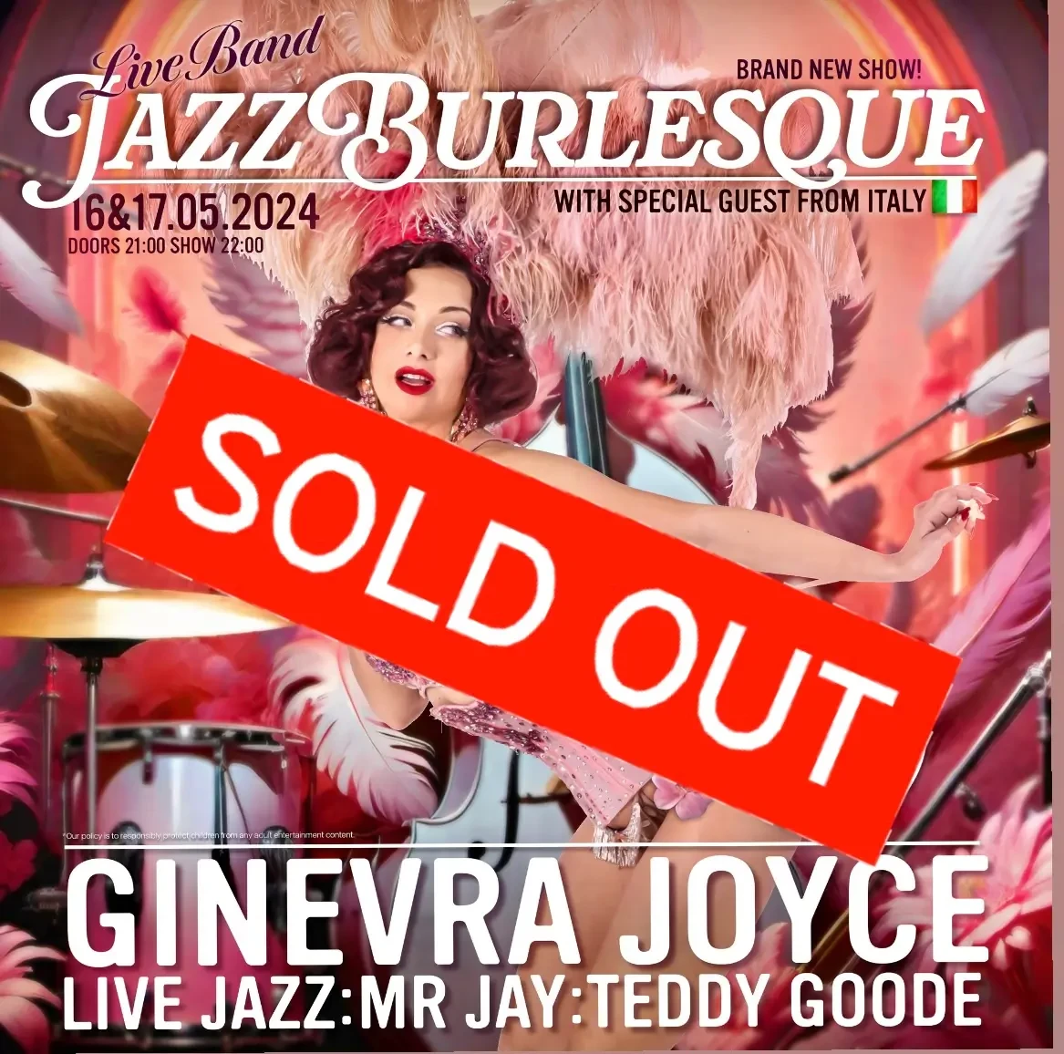 За първи път на ще представим бурлеск кабаре с жива джаз банда! Едно шоу, което ще ви пренесе изцяло в света на ретро кабарето от 20те години на миналия век, когато всичко се е случвало под звуците на живата музика. Специален гост ще бъде една от най- ярките звезди на световната кабаре сцена Джиневра Джойс, италианката, която покори света. Тя е в топ 50 бурлеск артисти според световната класация на Burlesque Magazine и е класирана редом с легендата Дита Вон Тийз.