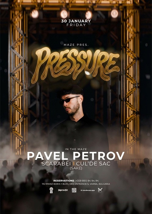 Get ready for PRESSURE with Sofia legend PAVEL PETROV and Varna favorites SCARABEI and CUL'DE SAC (SAKÉ)