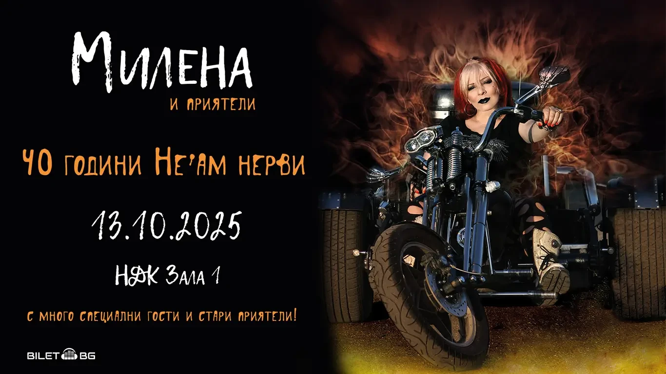 Tickets for the concert of Milena and friends on October 13, 2025 in Hall 1 of the National Palace of Culture are on sale in the Bilet.bg network (including Fast Pay box offices and "Na timno" stores), as well as online at https://sme.bilet.bg/