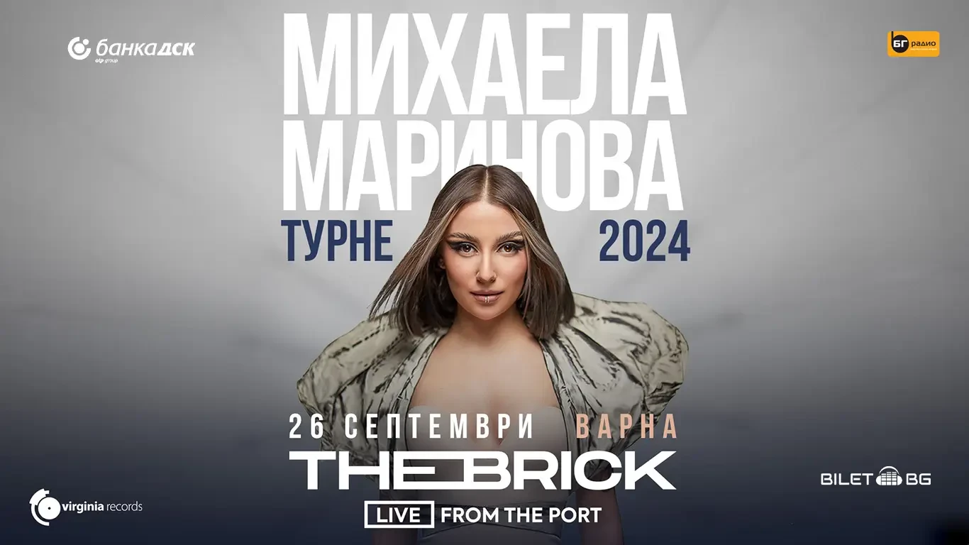 Националното турне на Михаела Маринова стартира с първи концерт в морската ни столица – Варна. Изпълнителката ще се качи за втори път на сцената на The Brick Port, в компанията на своята банда (Ангел Дюлгеров, Пламен Денчев, Евден Димитров, Радо Казасов, Катя Кръстева и Никола Стойков) и чисто нова музикална програма. Не пропускайте възможността да бъдете "очи в очи" с Михаела и нейната музика!