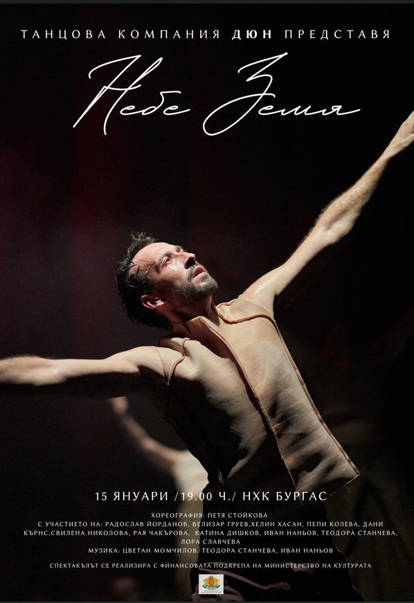 НЕБЕ ЗЕМЯ разглежда темата за човешката сърцевина – вътрешното пространство, в което се преплитат всички версии на съществото ни. В това пространство, като в сън, се срещат и сливат символични образи на човешкия жизнен опит и душа.