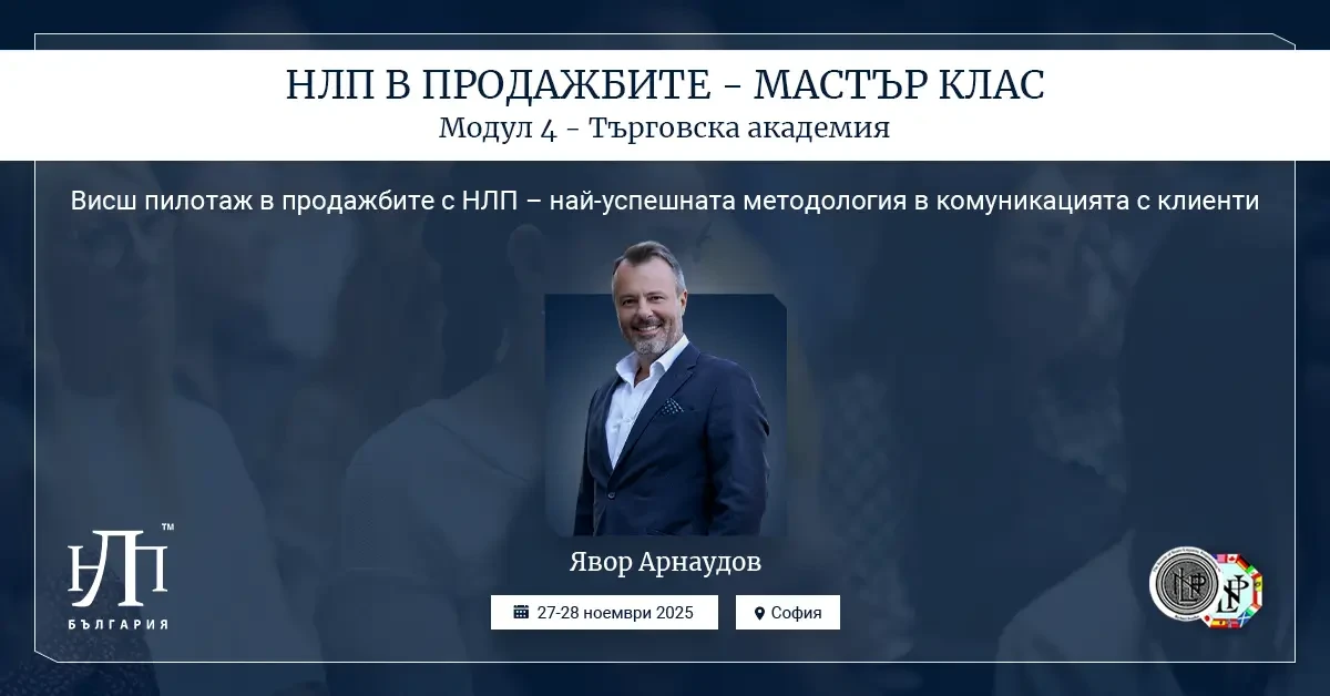 За кого е този курс: Всеки, който желае да въздейства чрез речеви и поведенчески бизнес модели, За онзи търговец или ръководител на търговски структури, независимо от предходен опит и индустрия.