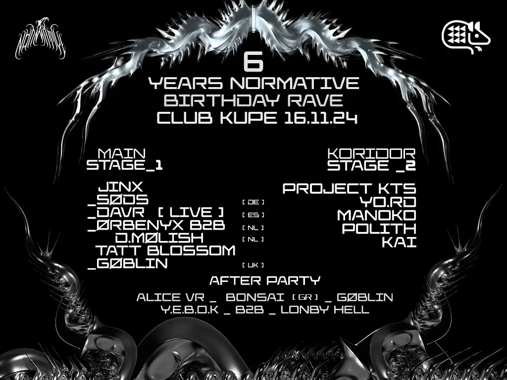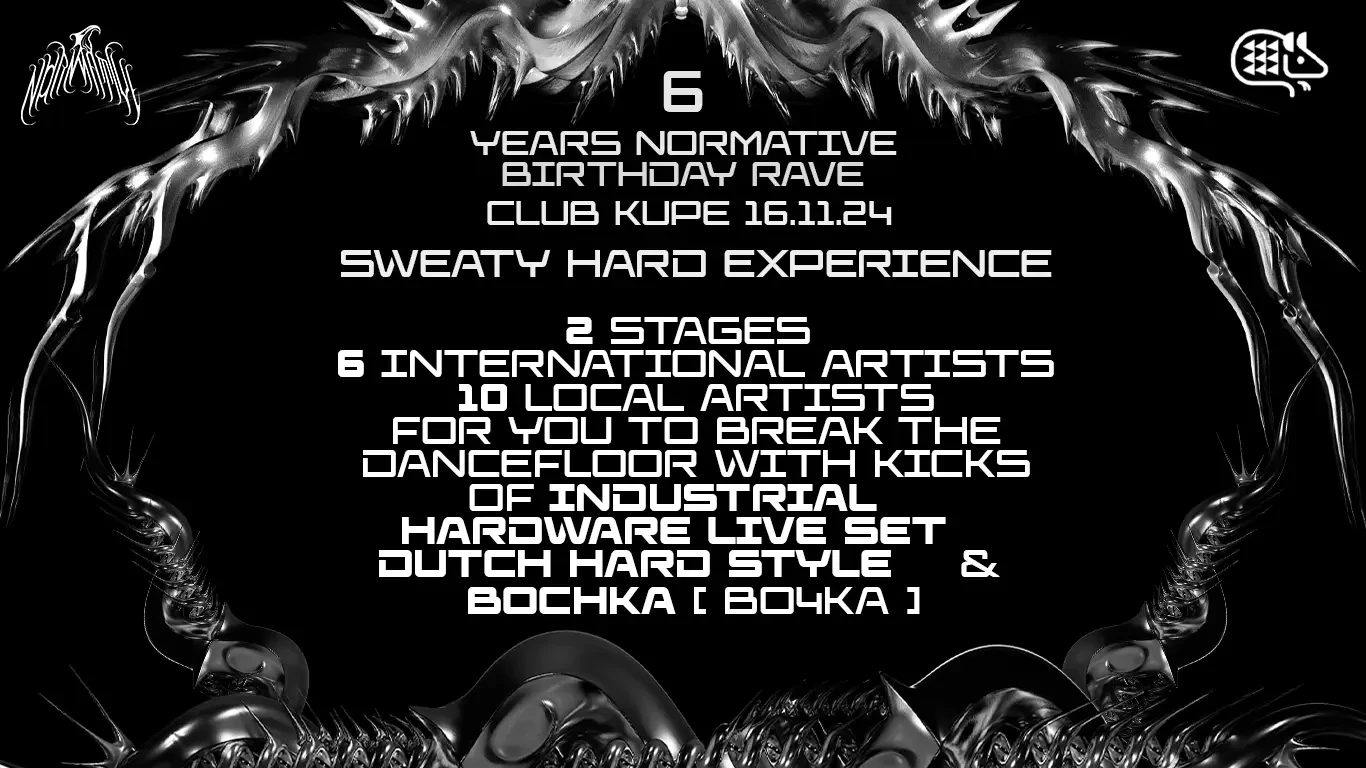 Normative will turns 6 on November 16th. Normative will celebrate a hard & sweaty birthday rave @ Club Kupe.
