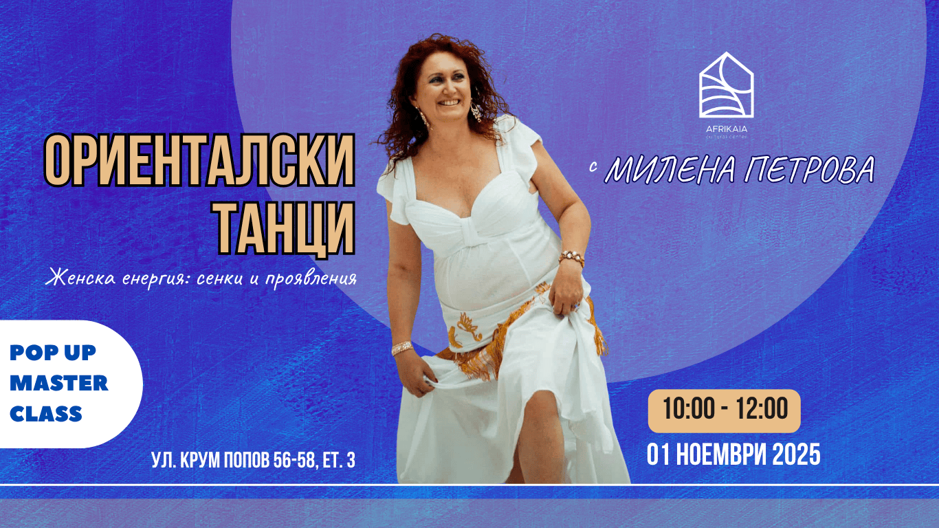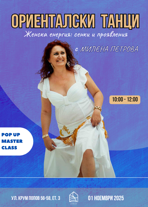 Milena Petrova Georgieva is a practicing physician and dance therapist, oriental dancer and choreographer, long-time leader of the oriental dance group "Eastern Woman" with numerous awards from international festivals - gold medals and cups, individually and with the group.