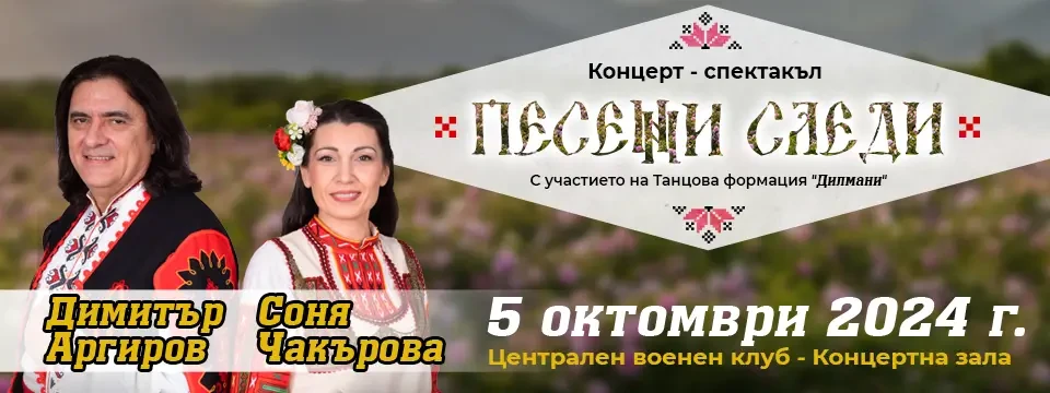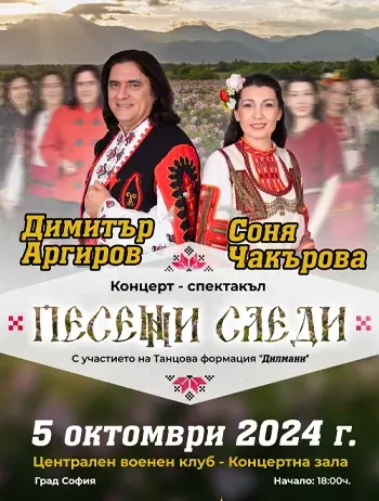 One of the few active Bulgarian folk duos - Sonia Chakarova and Dimitar Argirov, will delight the audience with a concert-performance under the title "Traces of Songs".
