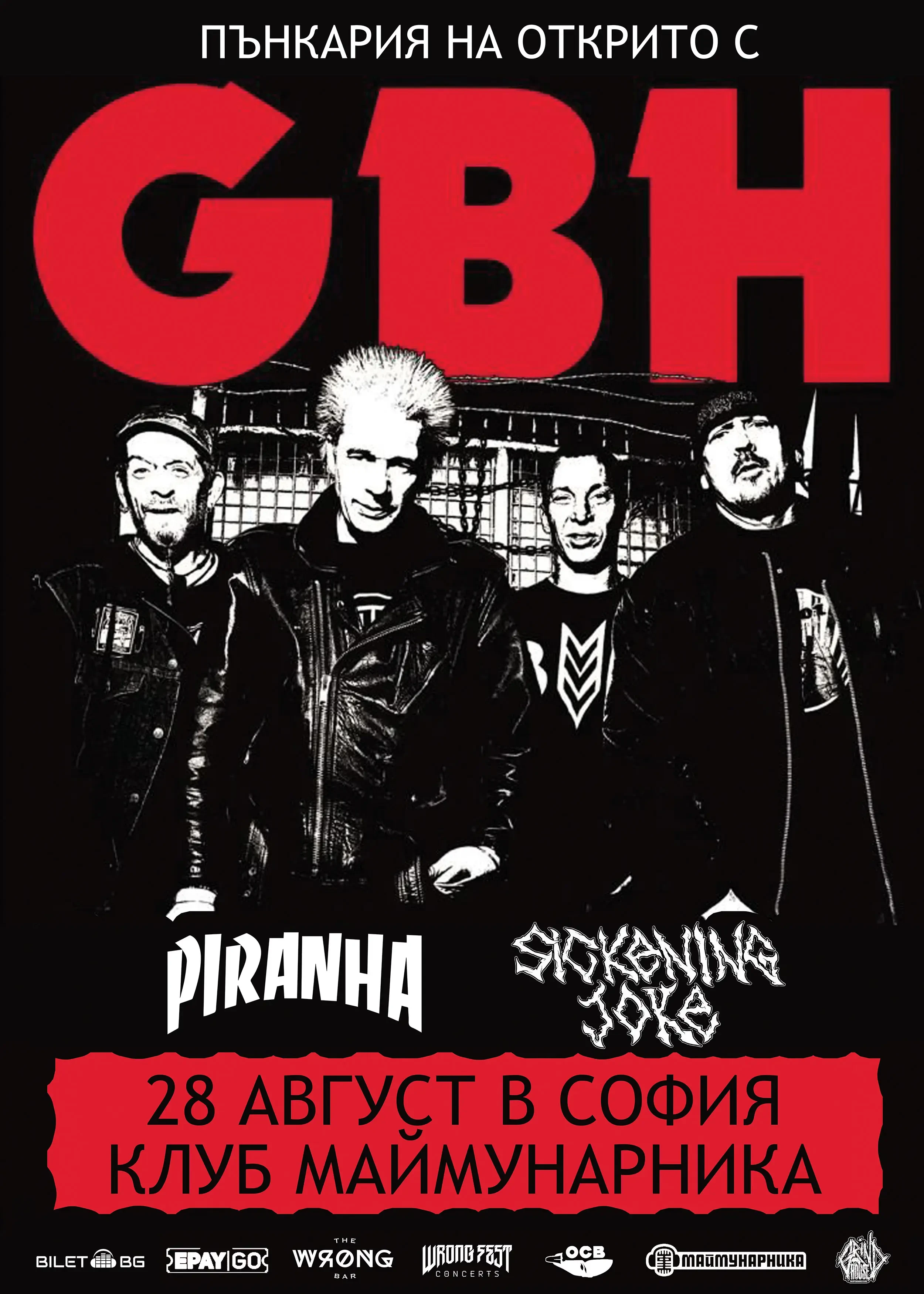 Що се отнася до GBH – представяне едва ли е нужно. Пионери на британския UK82 уличен пънк редом с Discharge и The Exploited, те са оказали колосално влияние не само върху пънка, но и върху метъла – вдъхновявайки Metallica, Slayer, Megadeth, Anthrax, както и банди като Bathory, Celtic Frost и Exodus. Джеймс Хетфийлд многократно е признавал влиянието им върху траш метъла, а Slayer дори записват кавър на „Sick Boy“ в албума Undisputed Attitude. От Rancid и KMFDM до Nirvana, Queens of the Stone Age, Green Day и The Offspring – енергията на GBH е оставила траен отпечатък.