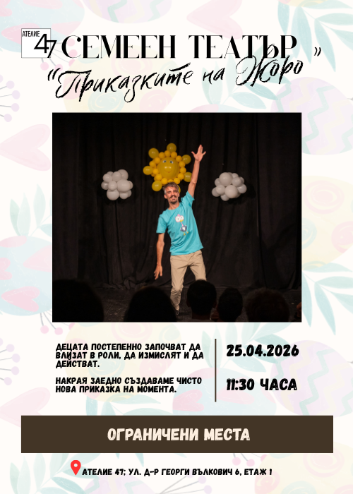 Място: Културен център "Ателие 47", ул. "Георги Вълкович 6", етаж 1