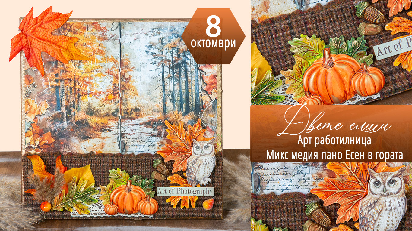 During the workshop we will create beautiful canvases with mixed media techniques. We will use some of the latest collections of papers, decorative materials, ceramic powder elements, beautiful fabrics and what not, to recreate autumn with its warmest colors in this painting!