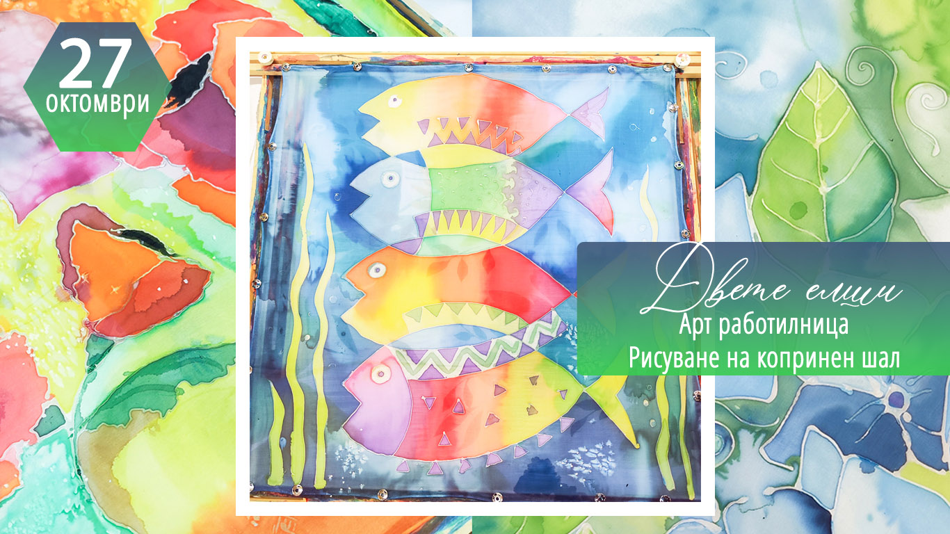 Накрая ще изрисуваме красив шал от естествена коприна с размер 55 х 55 см.