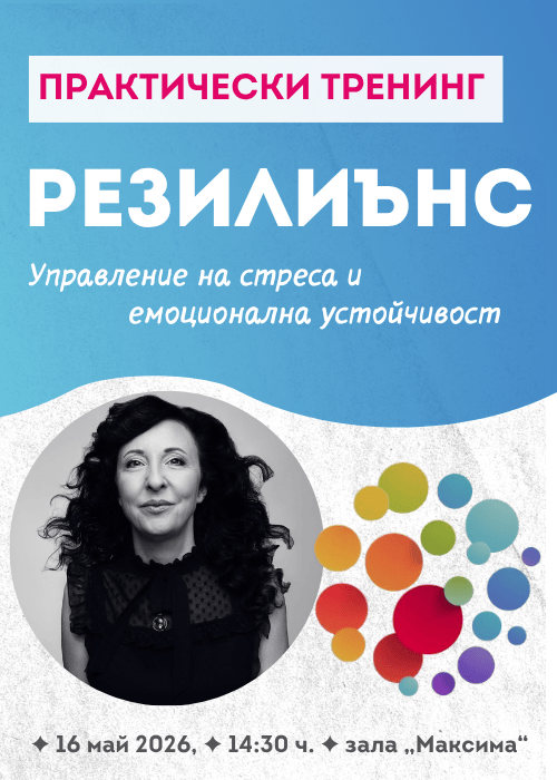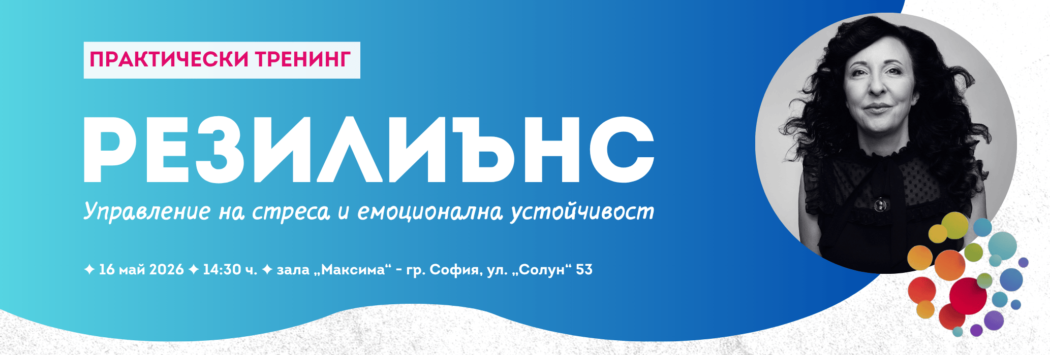 На 16 май (събота) от 14:30 ч. в зала Максима, гр. София, ул. Солун 53, ще се проведе практически тренинг РЕЗИЛИЪНС: Управление на стреса и емоционална устойчивост.