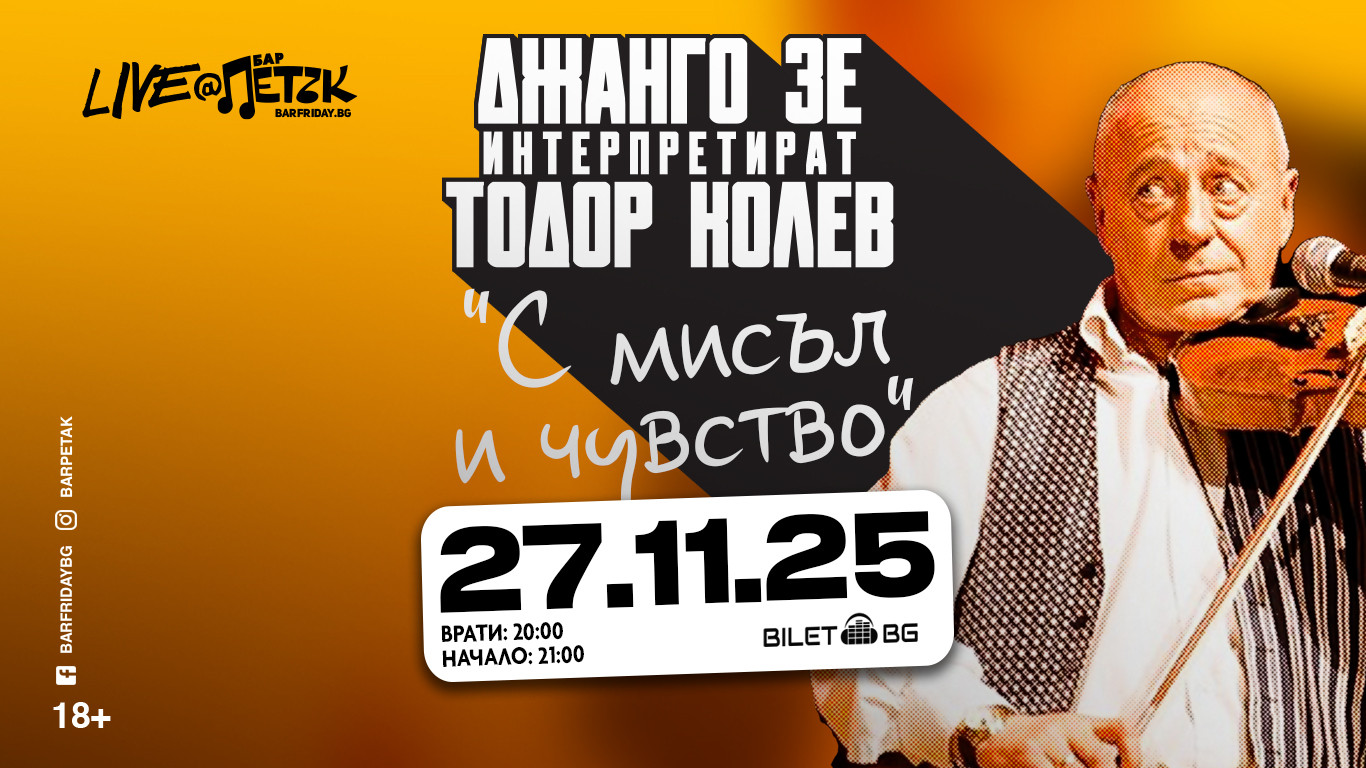 Come on November 27th (Thursday) because a GREAT evening awaits you at Petak bar, dedicated to Todor Kolev. 🤩