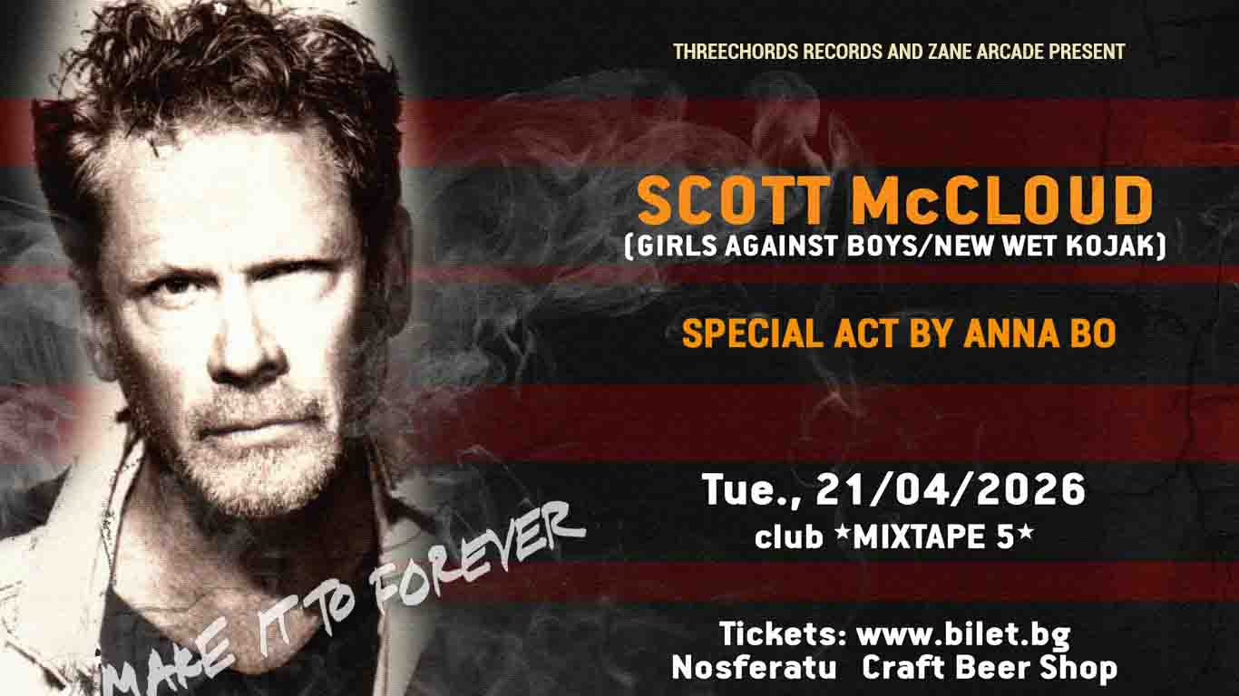 На 21 април 2026 г., вторник, Scott McCloud ще се качи сам на сцената на столичния клуб *Микстейп 5* за да се изправи срещу героите от песните на Girls Against Boys, размишлявайки върху живота, наслаждавайки се на спомените, но без да затъва в бездната на миналото. Хипнотизиращите му вокали обединят всички провокативни, минималистични образи в един солов проект, който отвежда носталгията на ново ниво, разкрива я пред публиката и я прави още по-уязвима, защото албумът „Make It To Forever“ звучи повече като акустичен албум на Girls Against Boys, към който ще се връщаме отново и отново, търсейки спокойствие и утеха в един смислен разговор със стар приятел.
