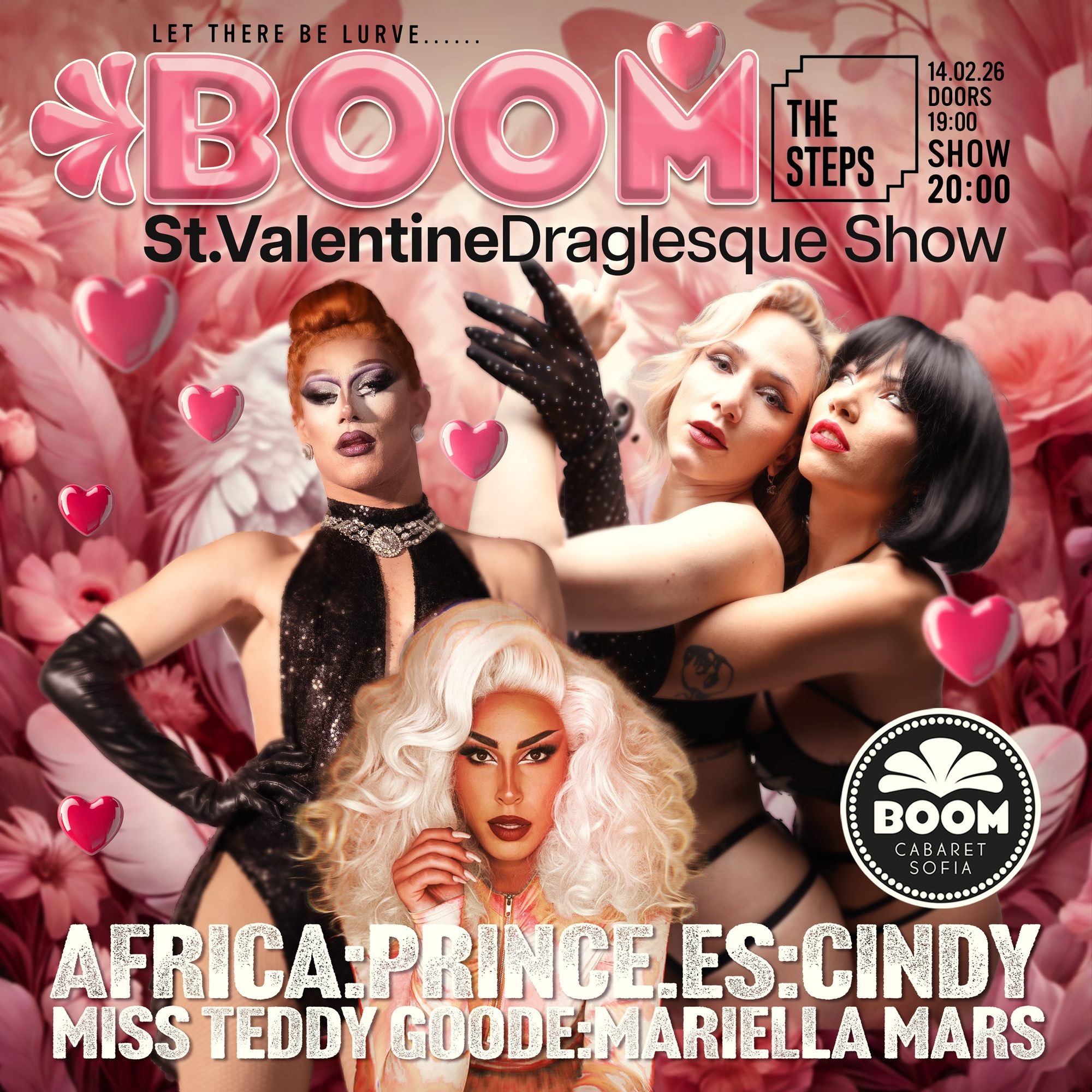 Teddy Goode and Cindy Rocketheart will heat up the stage with incredible burlesque performances, singer Mariela Mars will transport you to the world of love with her great voice, and queens Malina Yank and Princess, together with our dancers, will drive you crazy with a glamorous drag spectacle!