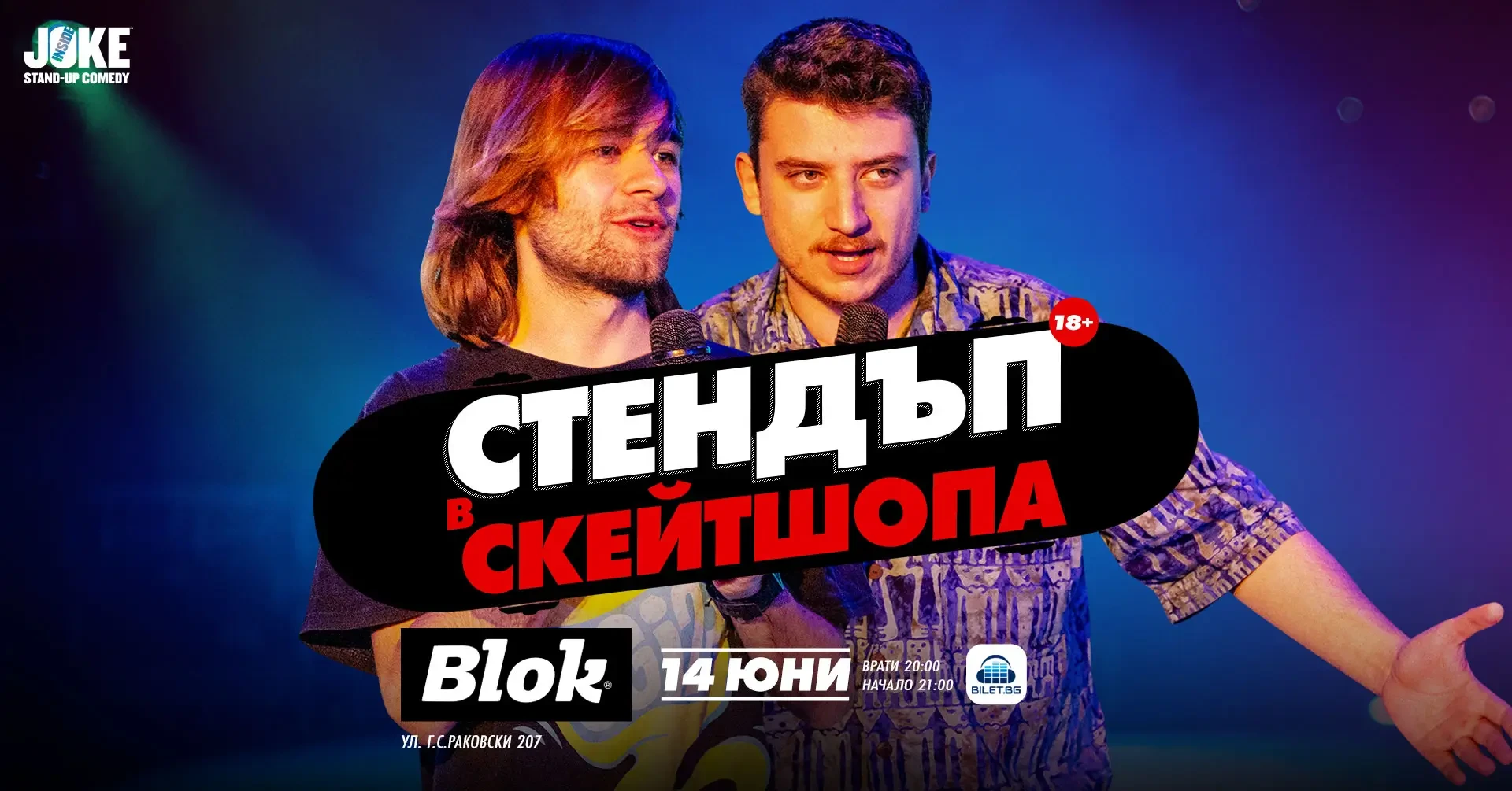 Царете на freestyle стендъп комедията ПЕТЪР ЕВТИМОВ и КУБРАТ АРГИЛАШКИ идват да разцепят от смях любимият столичен скейтшоп BLOK! Два сета, които лепват като при никой друг, в уникалната обстановка на BLOK ще ви направят плочки от смях!