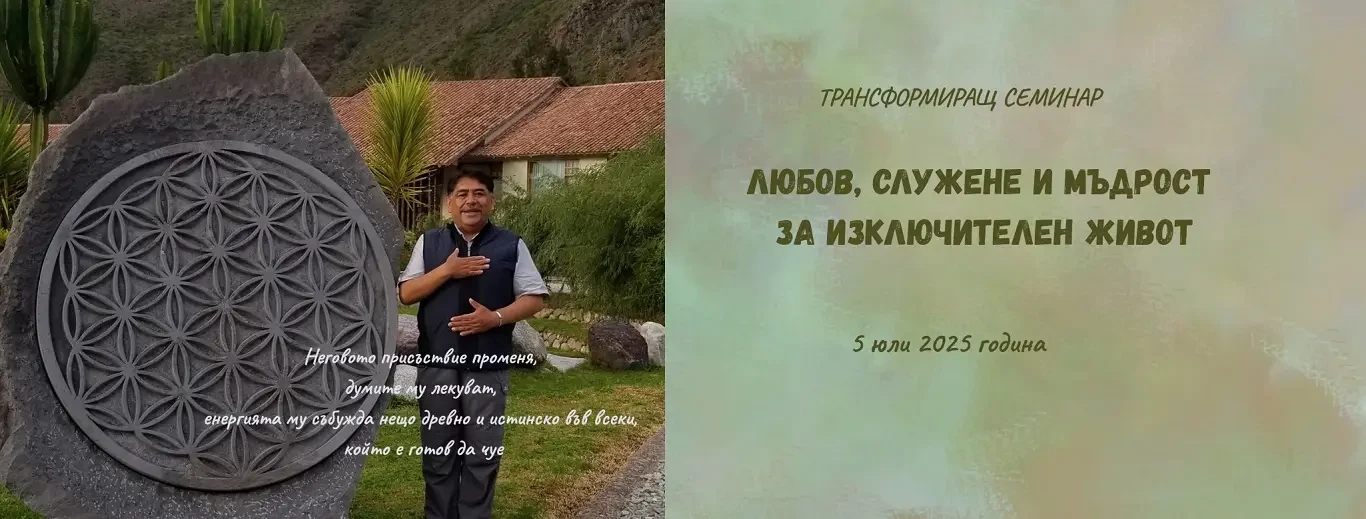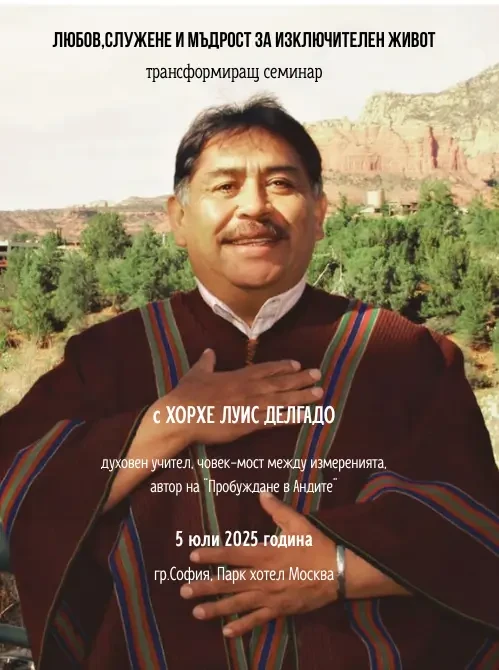 For the first time in Bulgaria, Jorge Luis Delgado - a man-bridge between the worlds, shaman, spiritual teacher and author of "Awakening in the Andes", will give a seminar and spiritual journey.