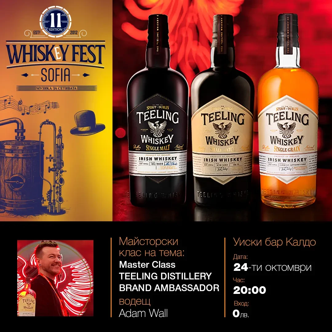 Ще ни разкаже ирландски истории за една от най-уиски фамилиите в света, а и ще опитаме 3 уискита х 20 мл и един коктейл: