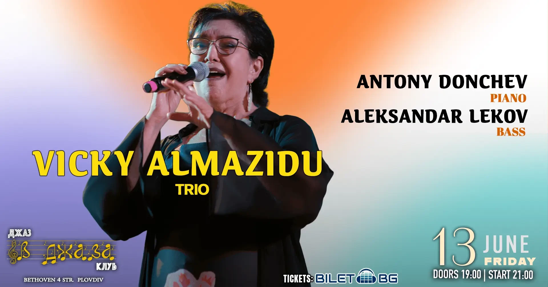Welcome to the cozy courtyard of the jazz club "V Jazza" this Friday to enjoy a special evening with Vicky Almazidou Trio!