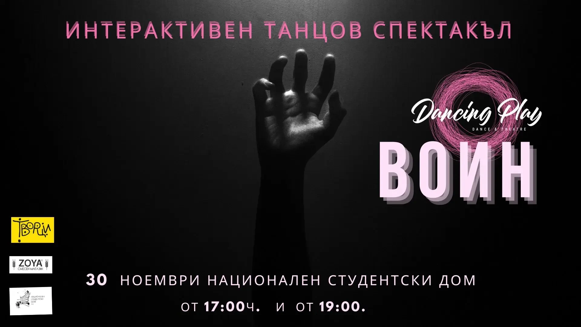 Новото начинание на Dancing Play - “ВОИН” е иновативно представление - интерактивен спектакъл, в който публиката е активен участник и съавтор на сценичното преживяване. Зрителят е поставен едновременно в ролята на субект и обект на собствените си емоции и решения, задвижващи драматургичното действие. Какво е сила?