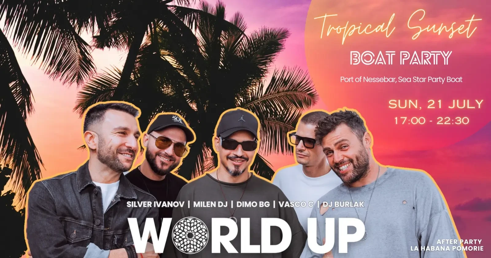 Елате на борда за най-вълнуващото Boat Party този сезон! World Up Records на Sea Star Party Boat, Несебър. Насладете се на хубава музика заедно със завладяващ залез, коктейли и тропическо настроение.