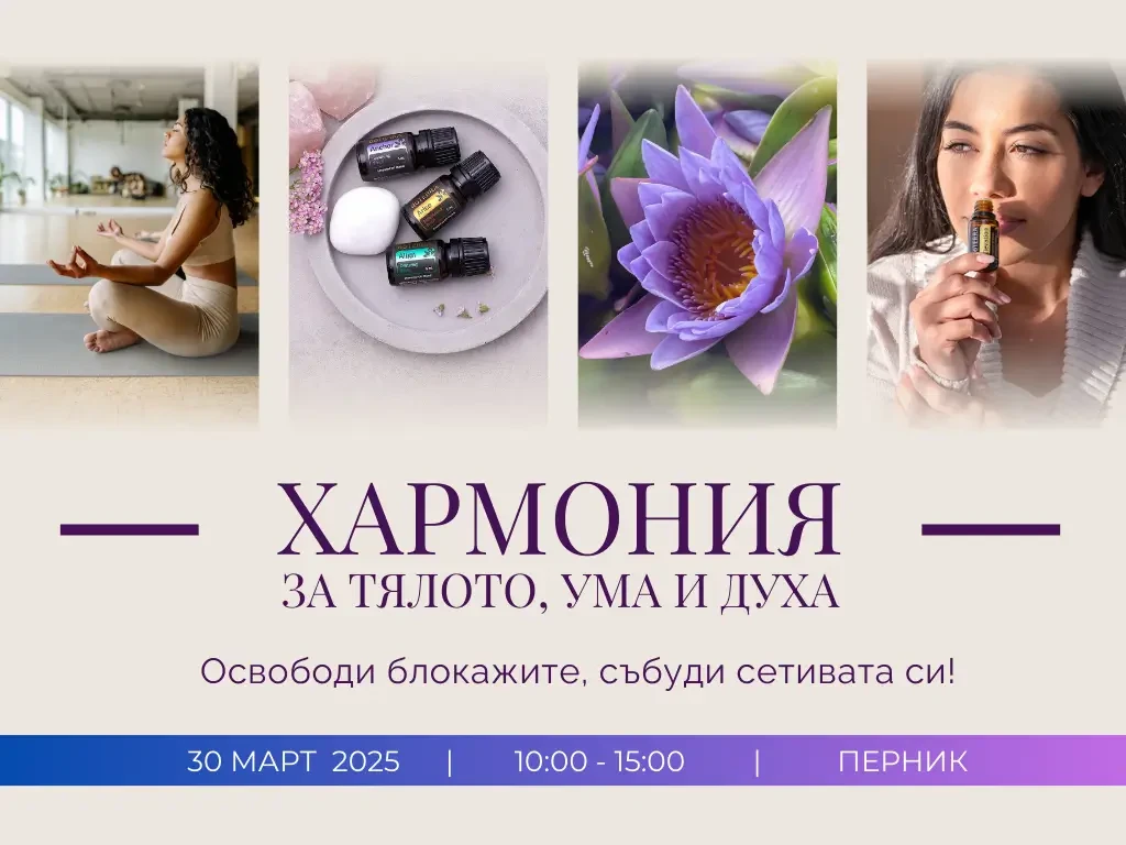 "Harmony for Body, Mind and Spirit" is the first of its kind aromatherapy event in the city of Pernik!