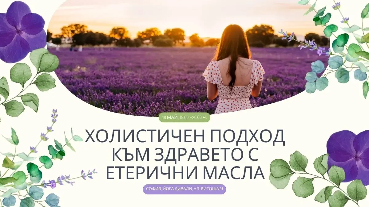 Welcome to the seminar "Holistic approach to health with essential oils" on May 18, in Sofia, Yoga Studio Divali, Vitosha Str. 91 from 6:00 PM to 8:00 PM.
