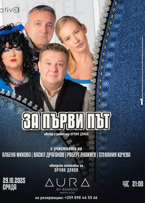 За всяко нещо има първи път – така казва народа. За първи път момчето става мъж, за първи път някой може да срещне любовта, за първи път една малка случка може да ти посочи правилният път, за първи път може да те споходи щастие. Много неща могат да се случат за първи път един следобед в една хотелска стая. И всеки човек може да открие нещо за себе си за първи път гледайки театрално представление. Когато актьорите са Албена Михова, Стефания Кочева, Васил Драганов и Роберт Янакиев може да е сигурен, че ще го разсмеят и развълнуват до сълзи. Всичко това ще ви се случи, ако гледате авторският спектакъл на Орлин Дяков „За първи път“.