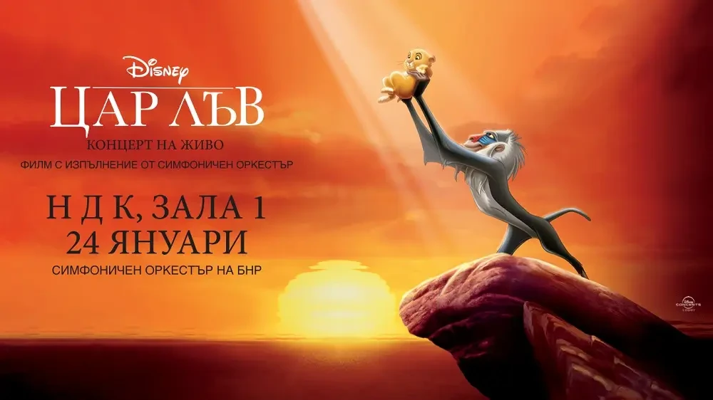 Sure. Entertainment представят „Цар Лъв“ на Дисни – концерт на живо с прожекция на филма на 24 януари в зала 1 на НДК.